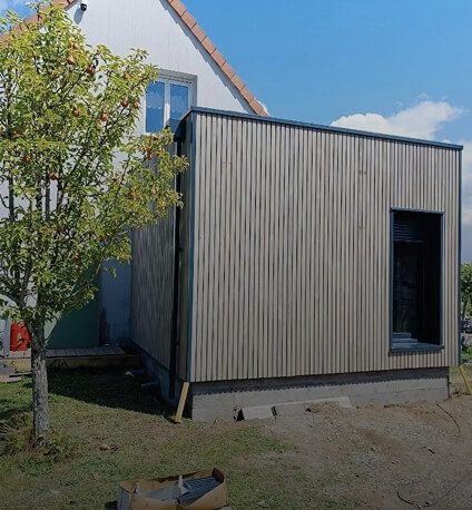 Innobois nous a accompagné à réhabiliter un espace vétuste en une extension bois moderne. Innobois a rehaussé cette extension afin qu'elle se raccorde parfaitement à notre maison. Cette extention permet une vie de rdc pratique et confortable. Une terrasse bois y a également était ajouté pour un accès au jardin enfin pratique. Merci à Adrien et à son équipe tous très pro à l'écoute et efficace.