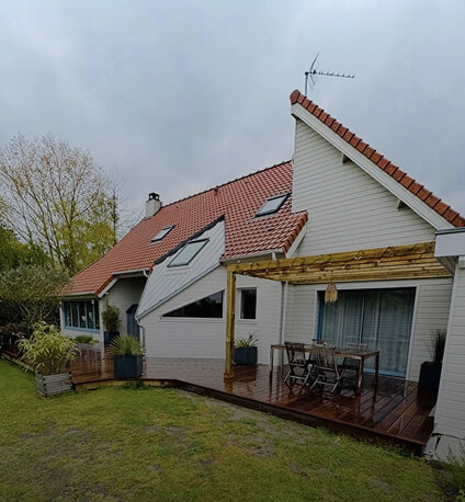 Notre équipe réalise l'aménagement de terrasses, bardages extérieurs et autres structures pour sublimer votre espace extérieur avec du bois durable et écologique.