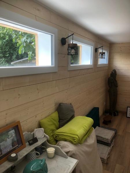 Intérieur en lambris accompagné d'un beau parquet qui permet comme vous pouvez le voir sur les photos, de rendre cette pièce chaleureuse en y donnant beaucoup de charme...